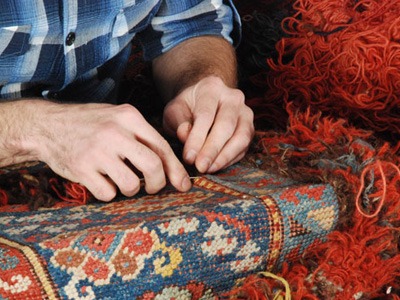 We repair and restore damaged area rugs by: